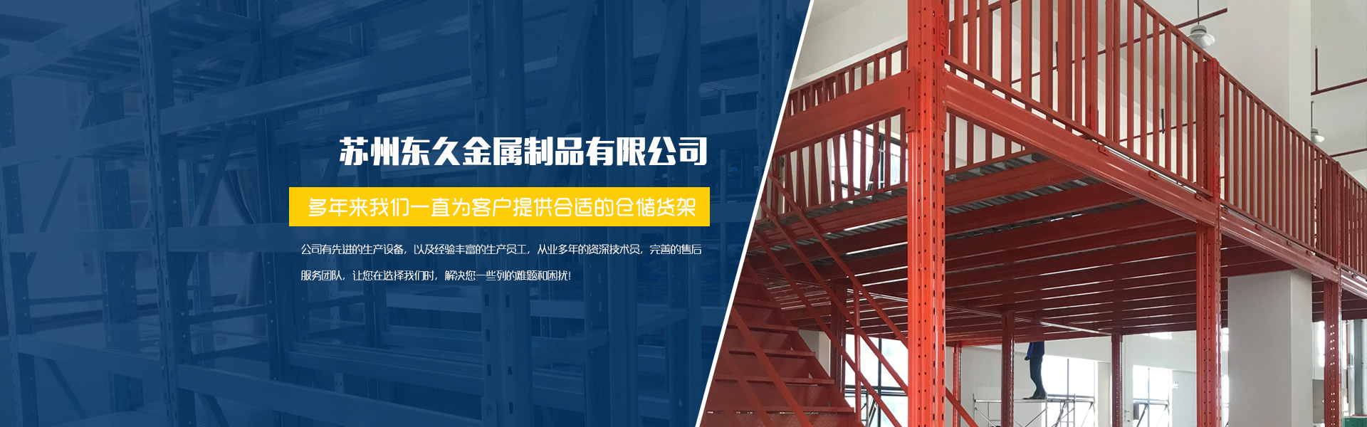 苏州东久金属制品有限公司是一家集研发、设计、生产、喷涂和安装为一体的综合型物流设备生产企业,设计生产各类仓储货架(阁楼式、模具式、横梁式、悬臂式、贯通式等)、料箱、托盘及各种非标式物流设备。企业的业务范围涉及汽车制造、机械制造、电子产品、医药、食品、汽车4S店、图书馆、保税仓库等领域,为企业量身定制仓储合理解决方案,创造更多利用空间,全体赛维亚人将共同努力去完成对您和贵公司的承诺,“合理、够用、好用”是用户给我们的评价。
